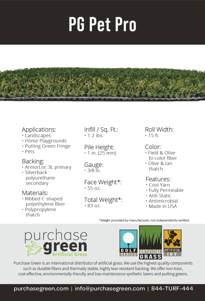 PG Pet Pro Cutsheet Lifetime warranty information Product safety information